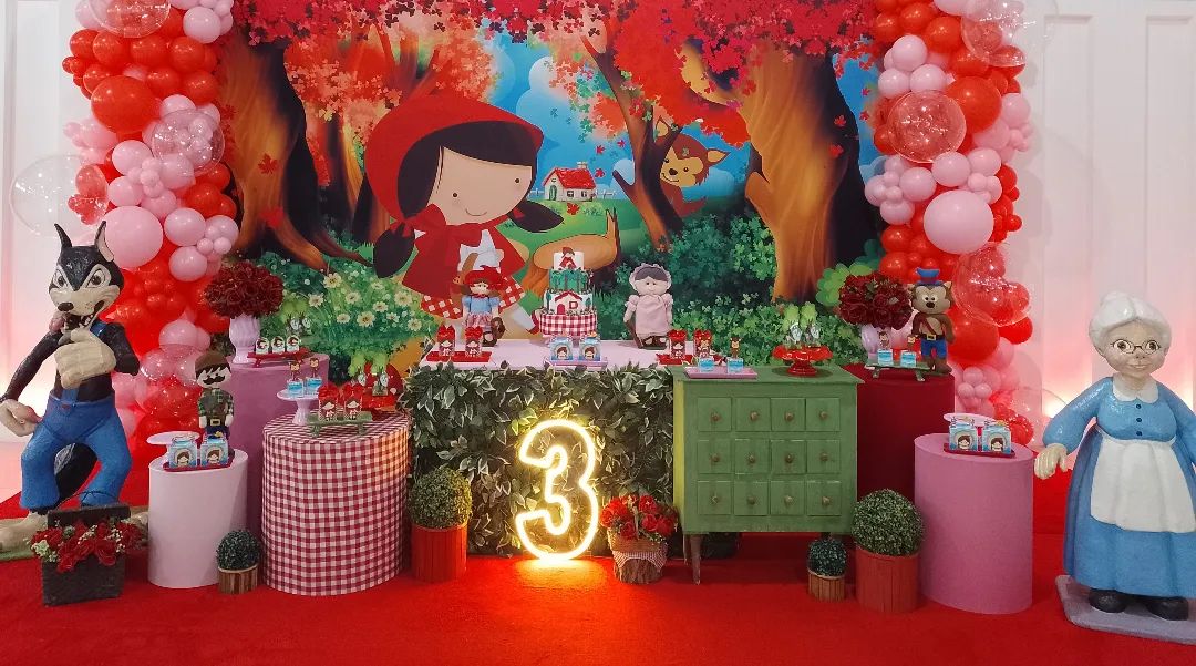 Aventura e contos de fadas na sua festa infantil em BH! O tema Chapeuzinho Vermelho é um clássico que inspira uma decoração lúdica com florestas e cestinhas. O Molecada Kids transforma seu espaço de festas em Belo Horizonte em um cenário encantador, com um buffet delicioso e recreação temática, garantindo uma celebração mágica e segura, longe do lobo mau.