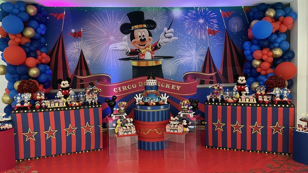 A magia do circo encontra o Mickey Mouse! O tema Circo Mickey é a combinação perfeita de alegria circense e o charme do personagem mais amado da Disney. O Molecada Kids oferece uma decoração de festa infantil em BH criativa e envolvente. Traga seu evento para o melhor buffet infantil BH e celebre com um toque de magia e aventura.