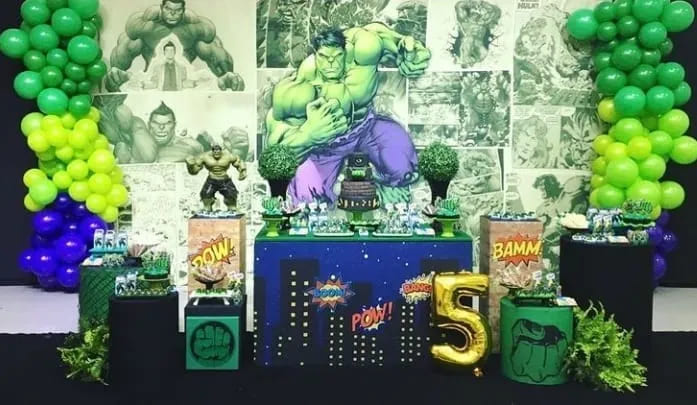 Força e músculos na sua festa! O tema Hulk, do universo dos Vingadores, é ideal para o menino que ama ação. O Molecada Kids oferece uma decoração de festa infantil em BH poderosa, com muito verde e roxo. Nosso buffet completo e estrutura segura garantem que a celebração do seu super-herói em Belo Horizonte seja forte em alegria e diversão.