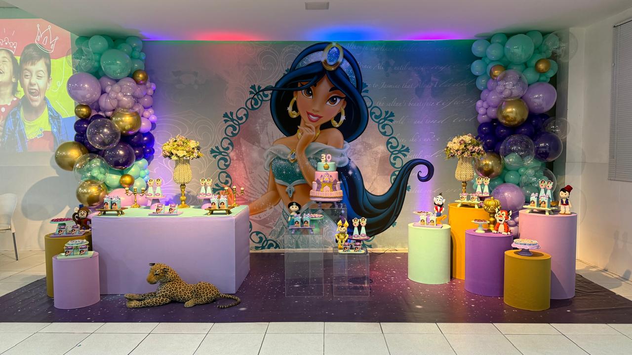 Um mundo ideal espera por você! O tema Jasmine e Aladdin traz a magia das Arábias. O Molecada Kids oferece uma decoração de festa infantil em BH luxuosa, com cores vibrantes, tapetes voadores e o toque do Gênio. Celebre a vida com o melhor buffet infantil BH, garantindo uma aventura espetacular e mágica para todos em Belo Horizonte.