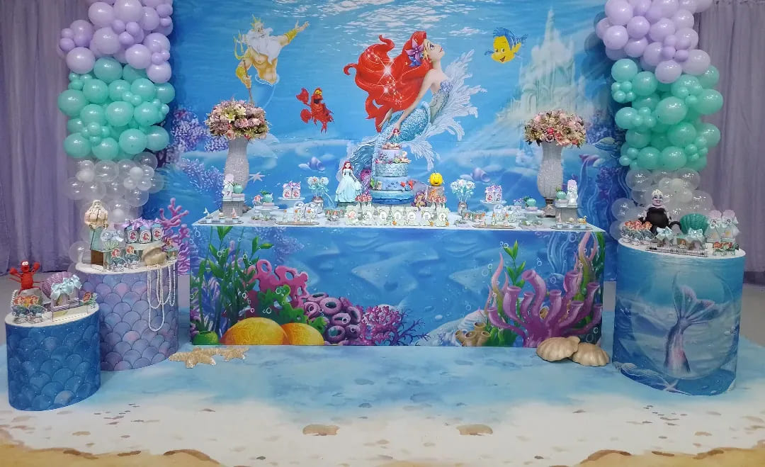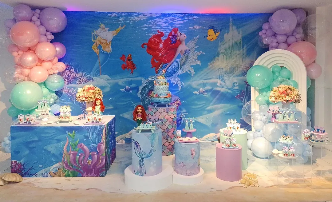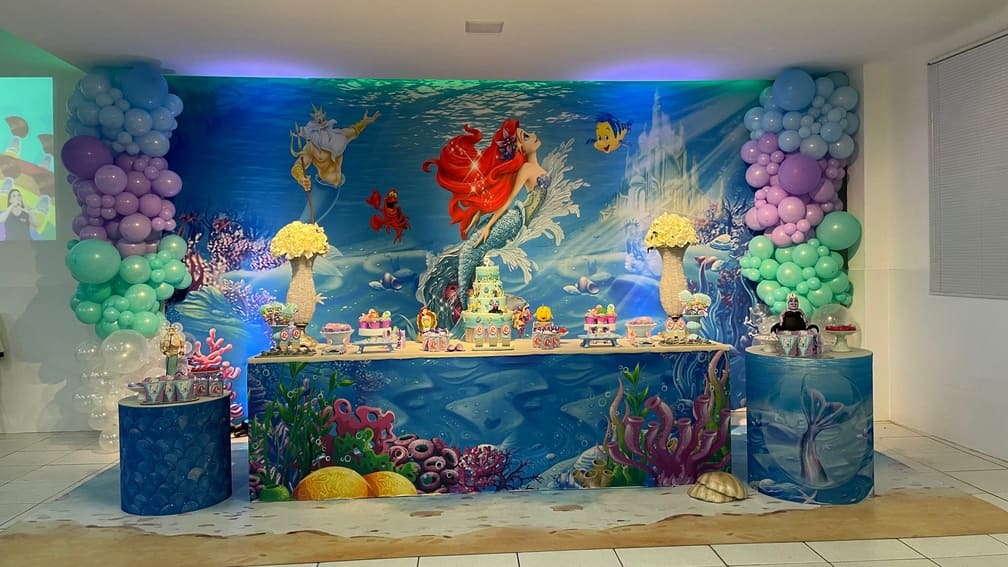 Mergulhe no Fundo do Mar com Ariel! Decoração mágica e aquática para a festa infantil em BH da sua princesa. O Molecada Kids traz todo o encanto da Pequena Sereia, com um buffet completo e estrutura perfeita para essa celebração em Belo Horizonte.