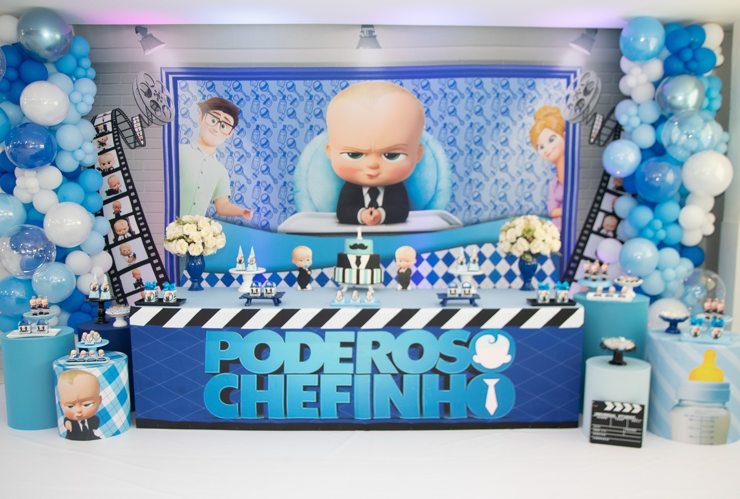 O chefe chegou! O tema Poderoso Chefinho é moderno, divertido e cheio de estilo. O Molecada Kids cria uma festa infantil em BH com decoração executiva e glamour, em preto, branco e azul. Nosso buffet completo garante uma celebração de CEO mirim no melhor buffet infantil BH.