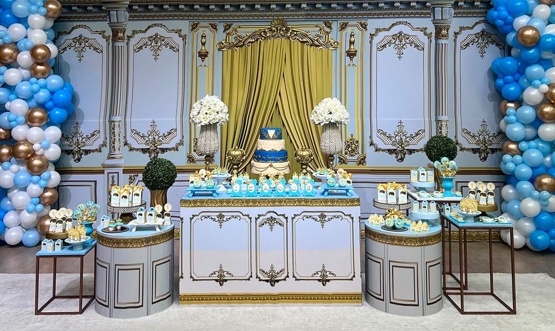 O luxo de um aniversário real! O tema Realeza (Príncipe ou Princesa) é sinônimo de elegância e sofisticação. O Molecada Kids cria uma festa infantil em BH com decoração em dourado, coroas e tapetes vermelhos. Nosso buffet completo transforma seu evento em um verdadeiro baile no melhor buffet infantil BH.