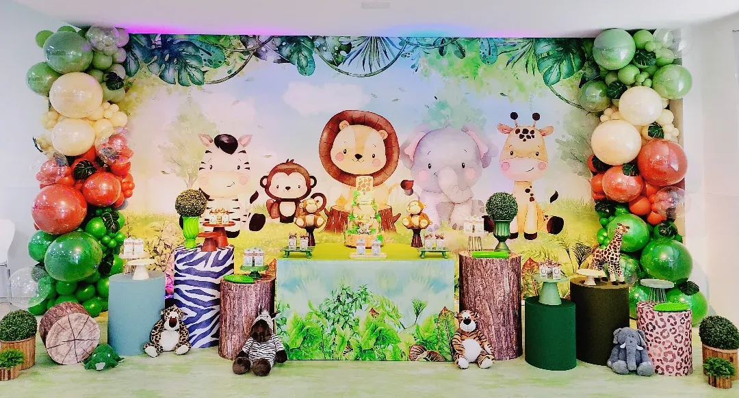 Fofura selvagem para os primeiros aninhos! O tema Safari Baby é ideal para o primeiro aniversário, com animais em versão cute e cores suaves. O Molecada Kids oferece a decoração de festa infantil em BH mais delicada e charmosa. Nosso buffet infantil em Belo Horizonte garante um ambiente seguro, acolhedor e com a alegria dos bichinhos.