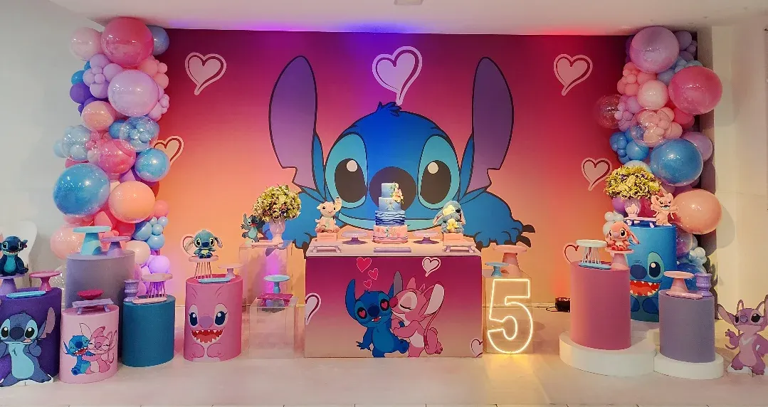 Ohana quer dizer família! O tema Stitch (Lilo & Stitch) é cheio de carisma e Havaí. O Molecada Kids cria uma festa infantil em BH com decoração tropical, cores vibrantes e a presença do alienígena mais amável. Nosso buffet infantil em Belo Horizonte garante uma festa completa, com muita alegria e o espírito Aloha para todos os convidados.