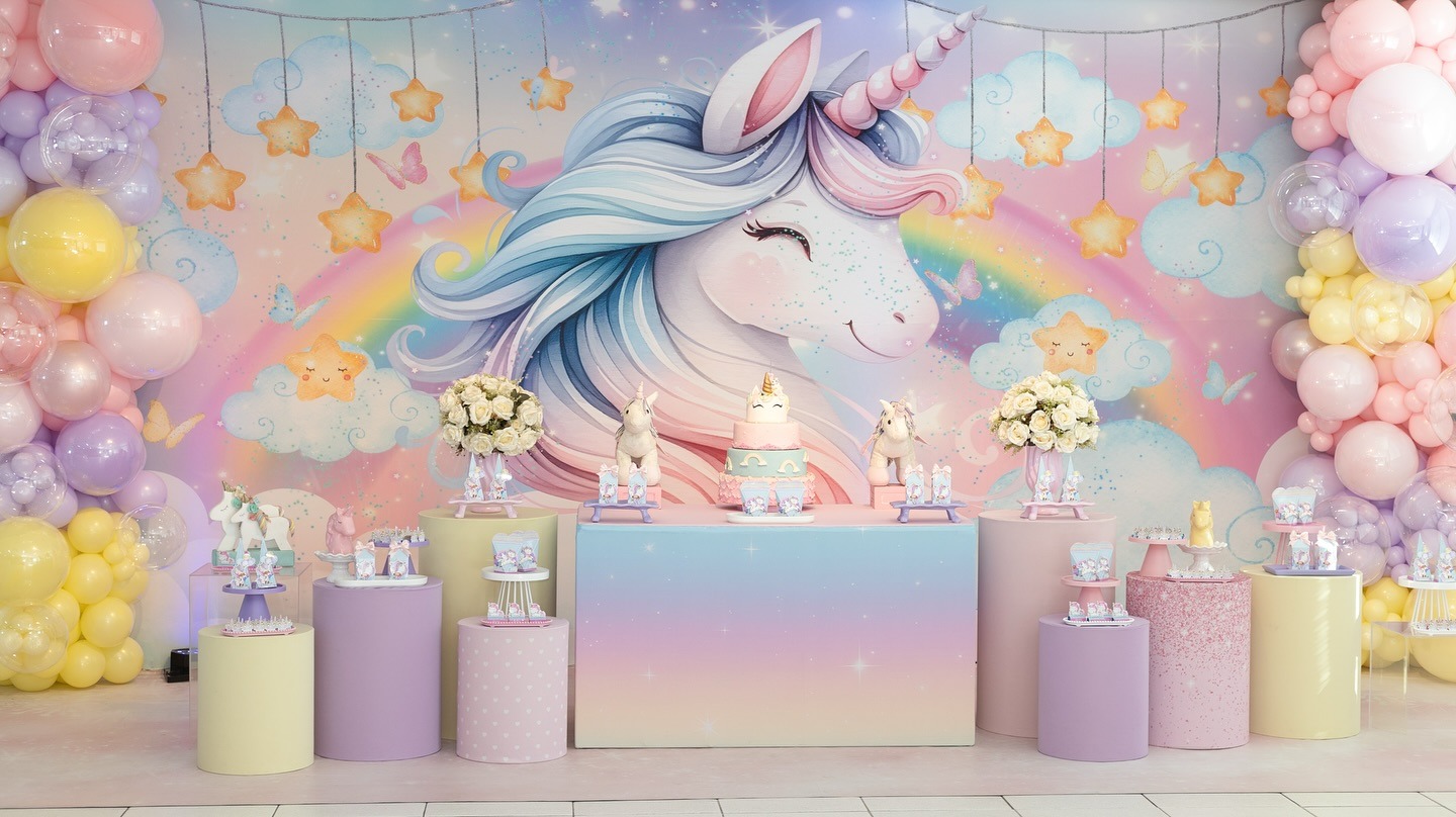 Magia, arco-íris e muito glitter! O tema Unicórnio é um dos mais pedidos, sinônimo de sonho e fantasia. O Molecada Kids oferece uma decoração de festa infantil em BH etérea, em tons pastel, nuvens e brilho. Nosso buffet infantil em Belo Horizonte transforma sua festa em um conto de fadas mágico e encantador.